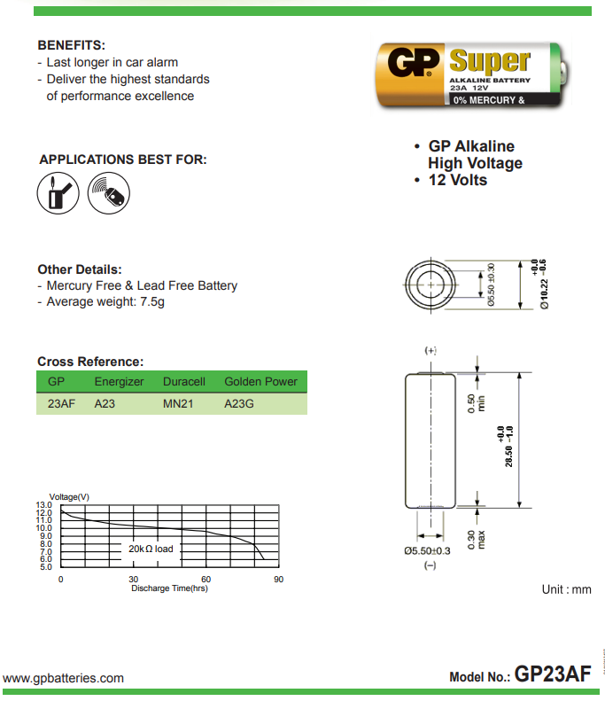 Pin A23 12V GP 23AF Super Alkaline – Pin Remote Cửa Cuốn, Ô Tô, Chuông Cửa