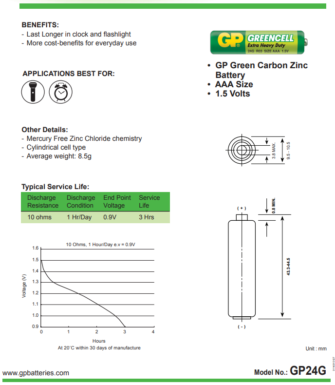Pin GP Greencell là giải pháp kinh tế, với hiệu năng ổn định cho các ứng dụng tiêu thụ điện trung bình đến thấp, như đồng hồ đứng độc lập hoặc treo tường.